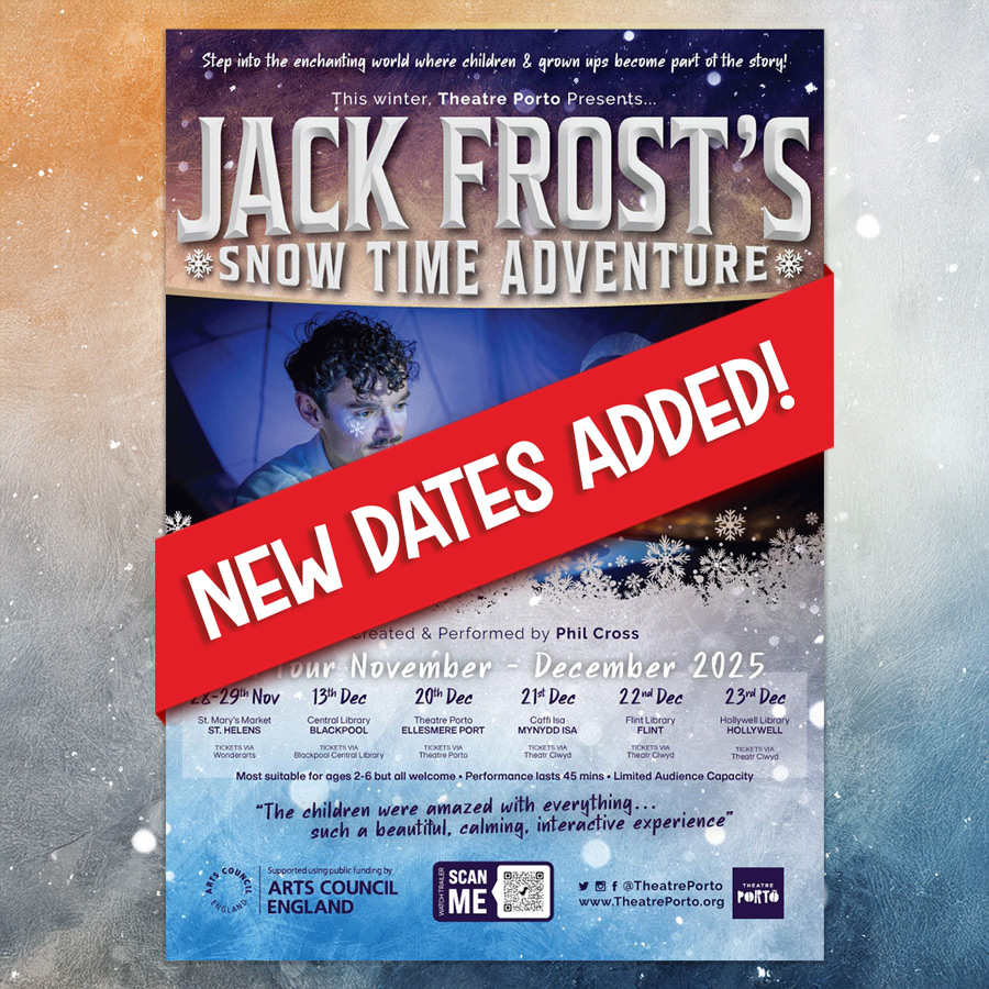 Jack Frost’s Snow Time Adventure was presented as a pilot at Theatre Porto in December 2023, it had a sold out run at Storyhouse, Chester and Burnley Youth Theatre in 2024 and is now available for touring in Winter 2025.